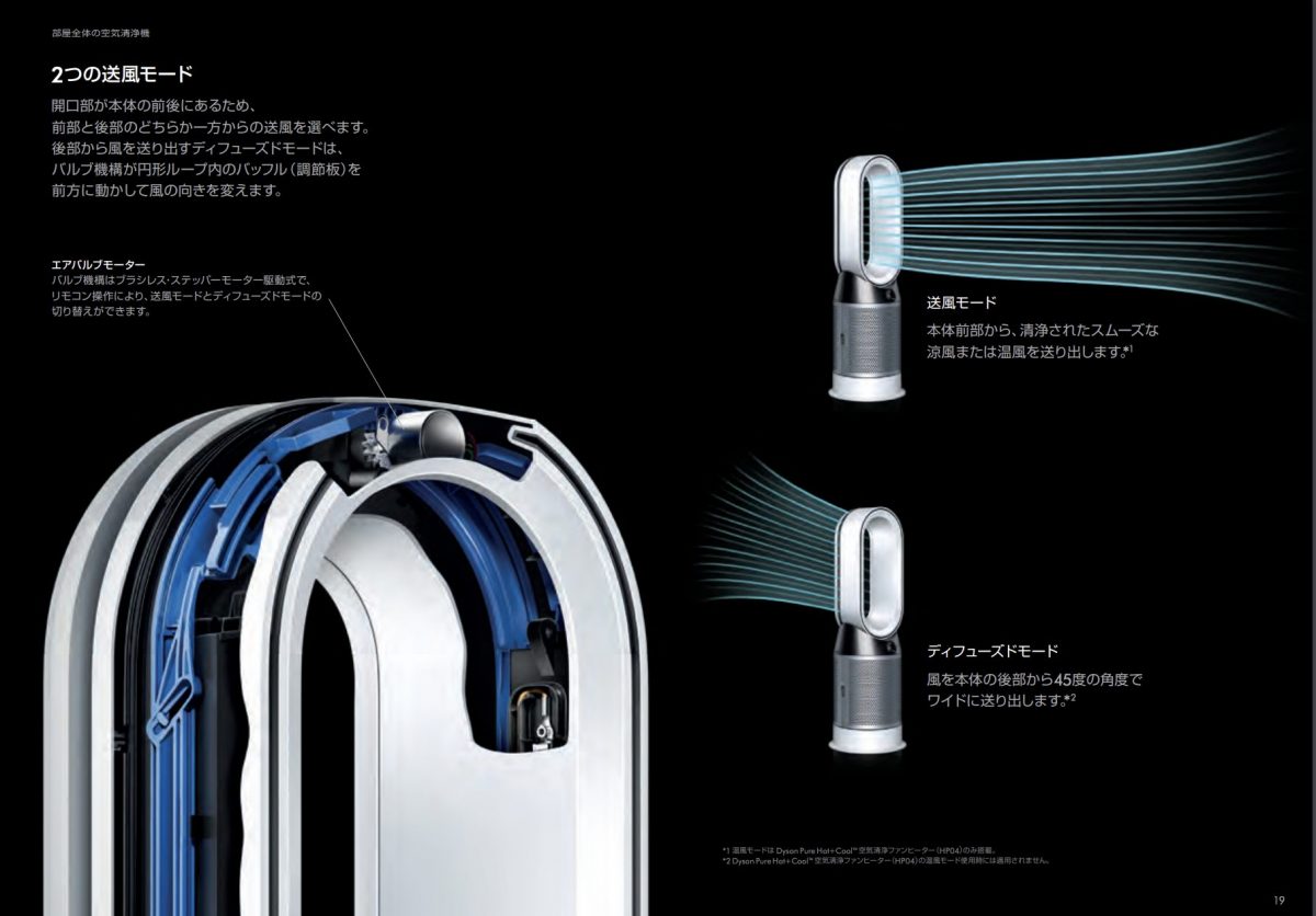 ダイソン空気清浄機では前方排気型|首振りはないため扇風機利用は想定していない